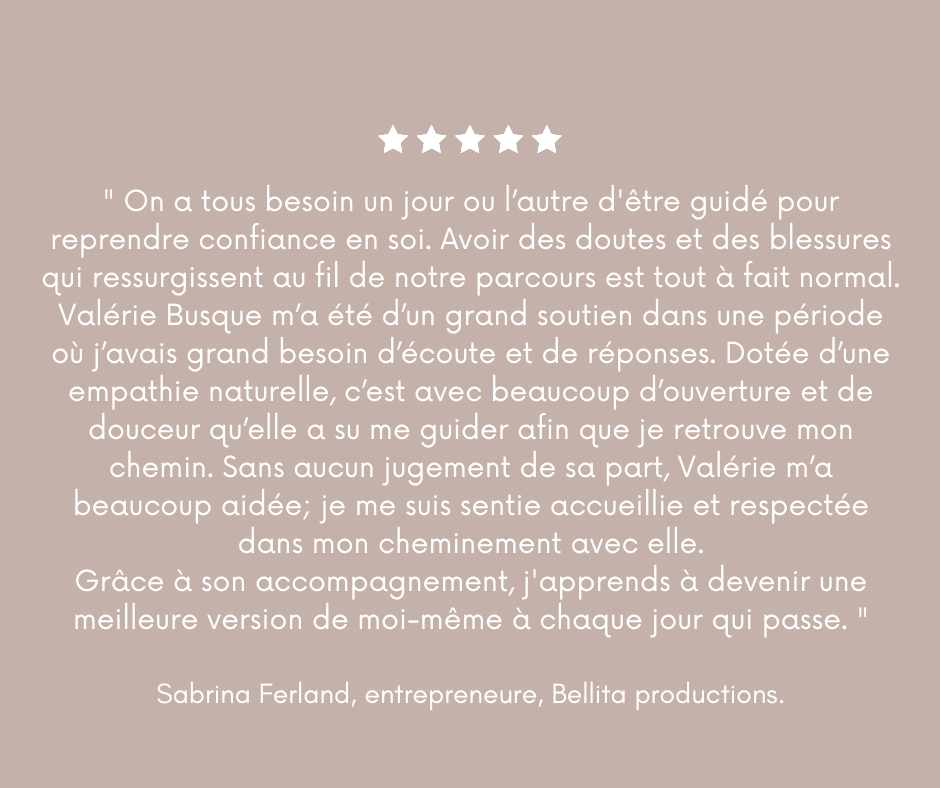 Je suis Valérie Busque. Passionnée par le sacré de la connexion humaine,
